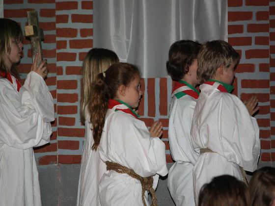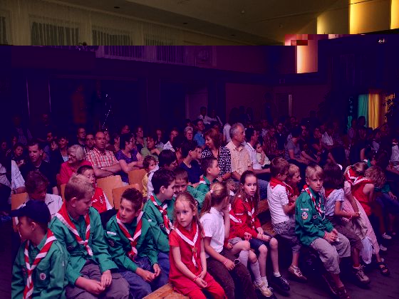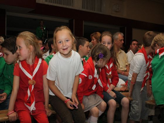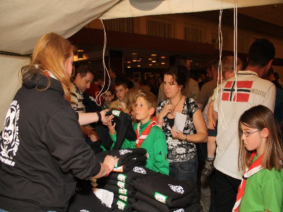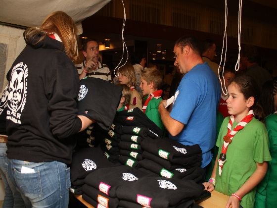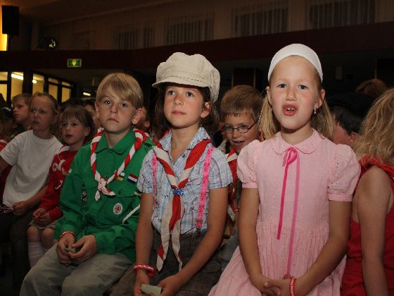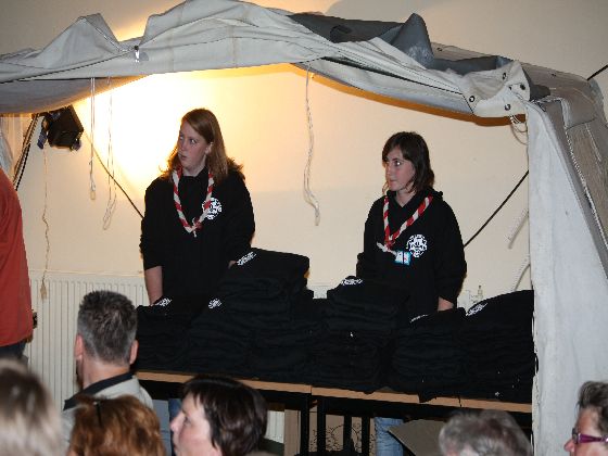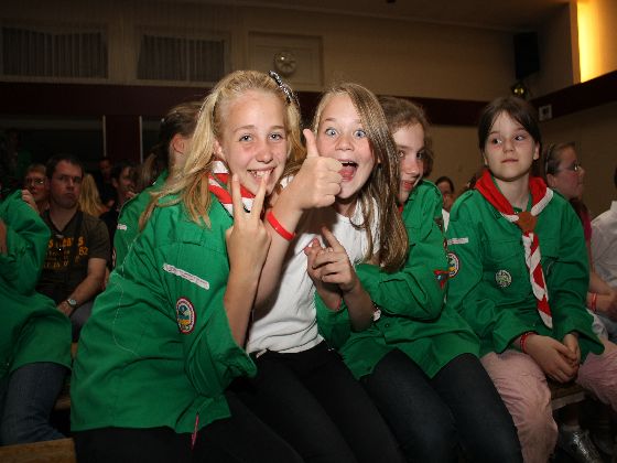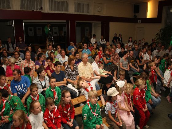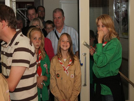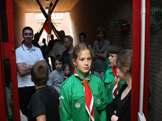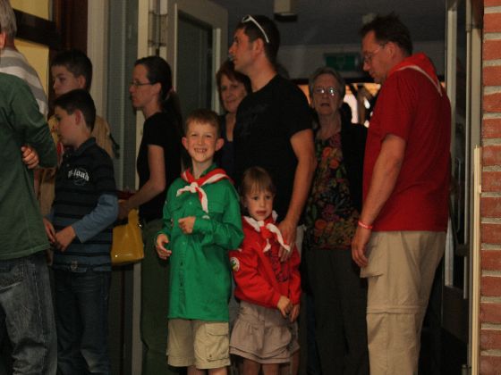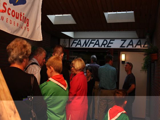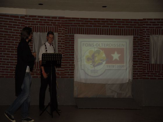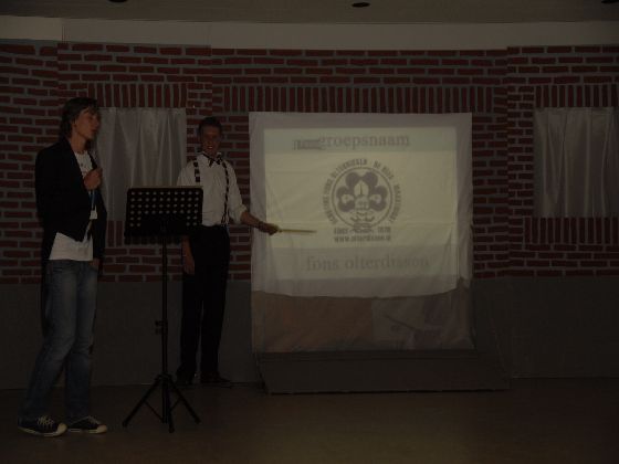 Zaterdagavond, rond zevenen. Auto's uit de richting Maastricht kwamen in Sint Geertruid aan. Verkeersregelaars wezen de parkeerplekken aan. Door een gang van pionierwerk. Dat begon met de oude vlag met het Scouting Nederland-logo zoals dit in 1979 werd gebruikt, en eindigde met het Scouting Nederland-logo zoals dat nu wordt gebuikt. Prominent hing tussen die twee vlaggen een grote groepsdas van Scouting Fons Olterdissen. Het begin van de feestavond.