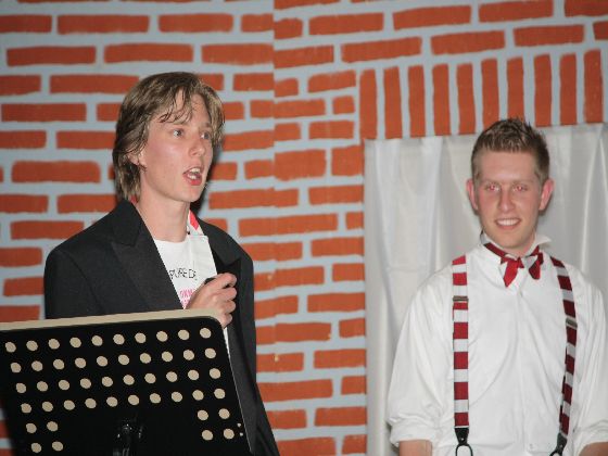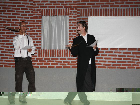 samen met een vriend een opera in het Maastrichts, 'De Kaptein vaan